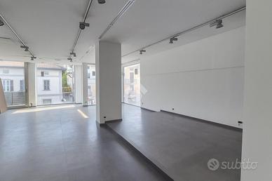 Proponiamo esclusivamente in affitto un negozio con superficie complessiva di circa 300 metri quadrati. Il negozio è disposto al piano seminterrato di un edificio di tre livelli.