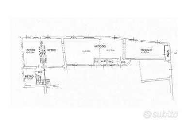 Il negozio misura 130 metri quadrati ed è situato al piano terra di una struttura che si sviluppa su due livelli. L'immobile dispone di un'area dedicata al carico e scarico merci facilmente accessibile. La soluzione è attualmente divisa in quattro locali ed è dotata di due servizi igienici ad uso esclusivo. L'ambiente è luminoso grazie alla presenza di tre grandi vetrine. La struttura è munita dell'impianto di riscaldamento, dell'impianto elettrico e quello di illuminazione.
