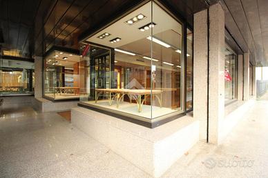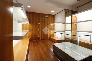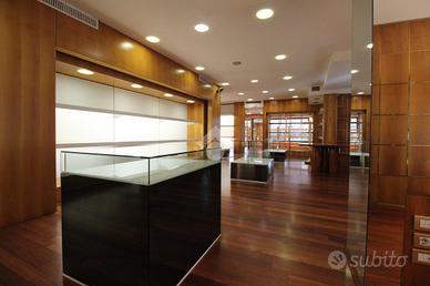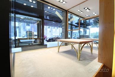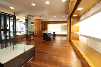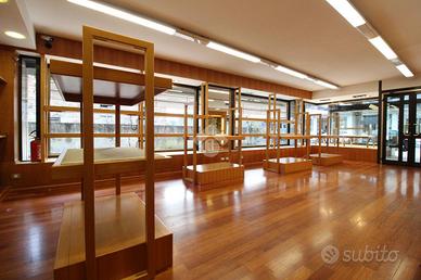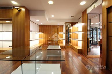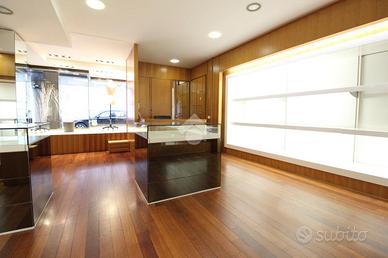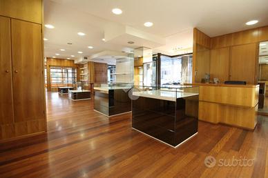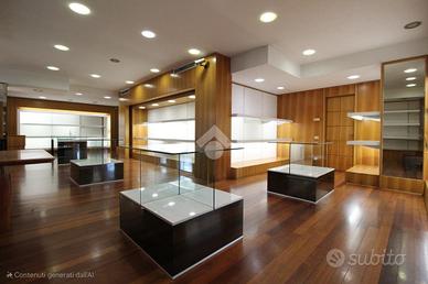 Gli spazi interni sono organizzati in due grandi sale principali, collegate in modo armonioso da un open space che garantisce continuità e ottimizzazione dell'esposizione. Il locale dispone di due ingressi indipendenti, ampie vetrate su due lati, due bagni, una cassaforte e arredi su misura ideali per attività di vendita al dettaglio come abbigliamento, accessori e articoli di pregio. È comunque possibile personalizzare gli ambienti secondo le proprie esigenze, rendendo questo immobile adatto a chi desidera avviare o trasferire un'attività in una location riconoscibile, curata e di forte rappresentanza.