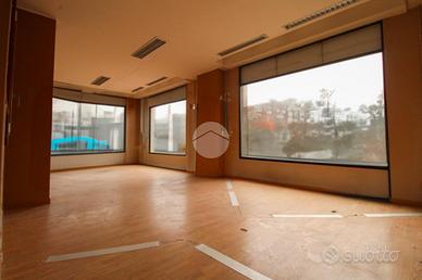 Il negozio misura 85 metri quadrati ed è situato al piano terra di una palazzina condominiale che si sviluppa su sette livelli. La soluzione è attualmente divisa in due locali ed è dotata di un servizio igienico. L'ambiente è particolarmente luminoso grazie alla presenza di quattro grandi vetrine con affaccio esterno. L'immobile è munito dell'impianto di riscaldamento, dell'impianto elettrico e quello di illuminazione. Mentre l'impianto di condizionamento è presente solo in un locale. Inoltre, possiede la predisposizione del sistema di allarme. L'immobile, è servito dalla porta blindata ed è cablato. Il locale possiede un box di 15 metri quadri e una cantina seminterrata di ulteriori 10 metri quadrati circa.