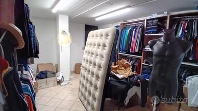 Dal porticato comune su cui affacciano le due vetrine accediamo al locale attualmente diviso con una parete in due spazi con servizio igienico.