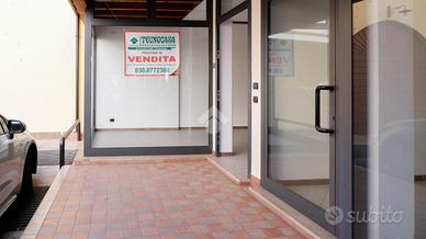 Il locale presenta un accesso dalla corte del complesso che si trova ubicato sulla strada più trafficata del paese. Le vetrine sono poste ad angolo consentendo così l'esposizione doppia di merci ed oggetti e la visione su due lati. Internamente il negozio presenta una pianta rettangolare di forma regolare con servizi igienici privati oltre ad un grande cortile esclusivo posto sul retro del negozio ed accessibile mediante una porta direttamente collegata allo spazio stesso. Il negozio è in ottime condizioni manutentive con pavimentazione che è stata realizzata rivestendo il fondo con mattonelle di materiale ceramico di colore chiaro. Sono presenti gli impianti elettrici e di illuminazione oltre ai servizi igienici con antibagno.