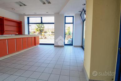 Proponiamo in locazione un negozio di una superficie calpestabile di circa 80 metri quadrati situato al piano terra di un edificio strutturato su due piani.