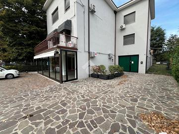 Il negozio si pone in posizione di elevatissima visibilità, dato il grande passaggio di mezzi e pedoni garantito da via Manzoni, su cui l'immobile si affaccia con tre ampie vetrine, protette dal dehors su suolo privato, ideale per disporre tavolini per i clienti. Il locale, da anni sede di attività alimentari, dispone di canna fumaria e può contare su 153 mq circa complessivi, di cui circa 65 mq dedicati alla ricezione dei clienti, mentre i restanti 90 mq circa già organizzati con magazzino, cucina, spogliatoio e servizio igienico con antibagno. Dispone di impianti autonomi, finiture di ottima qualità e di canna fumaria, prestandosi particolarmente bene ad ospitare attività nel mondo della ristorazione e più in generale dell'alimentare. Il locale è oggi sgombro da arredi ed attrezzature.