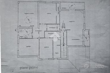 Attraverso le scale si accede al primo piano, dove si apre un ampio disimpegno che separa la zona giorno dalla zona notte.