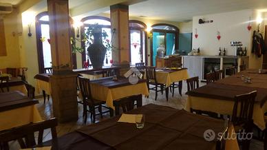 Al piano terra abbiamo il locale adibito a ristorante con sala con angolo bar, forno a legna con banco per lavorazione pizza, cucina, zona spogliatoio con bagno per dipendenti e doppi servizi di cui uno a norma disabili per i clienti.