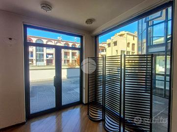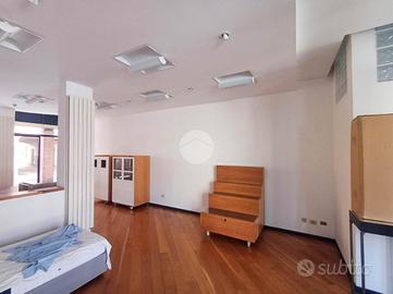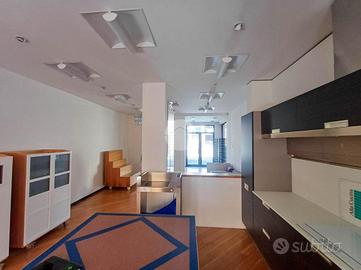 Il negozio misura 55 metri quadrati ed è situato al piano terra di una palazzina che si sviluppa su due livelli. La soluzione è attualmente un open space ed è munita di un servizio igienico privato. L'ambiente è particolarmente luminoso grazie alla presenza di quattro grandi vetrine.