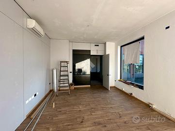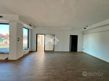 L'immobile in oggetto è un negozio suddiviso in due locali: spazio commerciale, dotato di ampi spazi e ampie vetrine ad angolo, che garantiscono un'ottima visibilità e luminosità e un ufficio a vista.