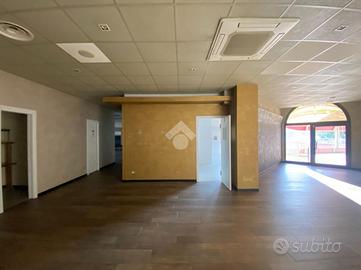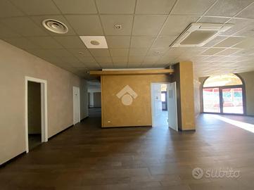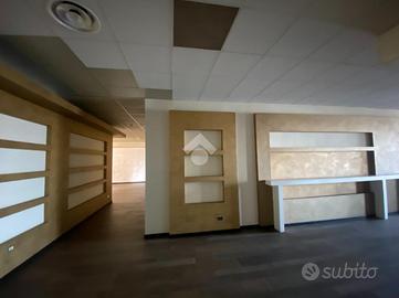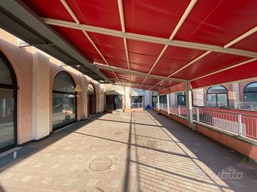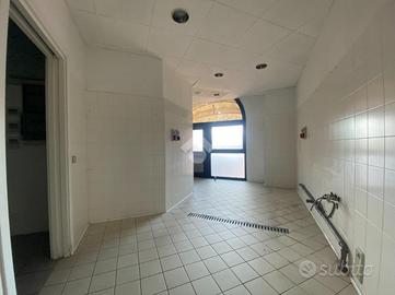In un conteso commerciale/direzionale il locale è posto al piano terra e vanta due ampi plateatici di cui uno di circa 200 metri quadrati con pergola. Internamente, il negozio si sviluppa i 3 locali: un ampio open space con due ampie vetrine e tutte le predisposizioni per il banco bar, un locale completamente piastrellato adibito a cucina e munito di canna fumaria, una zona da destinare a forno pizza, e una sala pranzo. Segnaliamo la presenza di 4 servizi igienici di cui uno allestito per disabili e un altro per il personale completo di doccia.