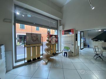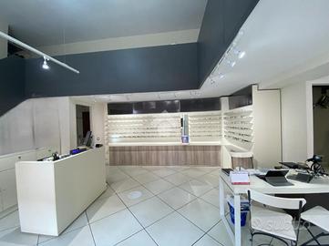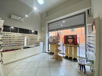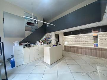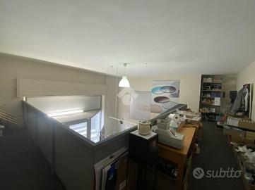 Internamente, l'immobile si presenta in parte soppalcato con struttura metallica con presenza di due locali al primo piano ad uso magazzino, mentre al piano terra due locali ad uso negozio collegati tra di loro e muniti di ampie vetrine che rendono l'ambiente molto luminoso. E' presente inoltre un locale ad uso laboratorio/ufficio e un servizio igienico completo di antibagno. Il negozio è munito di 2 serrande automatizzate e post auto riservati all'interno della corte condominiale.