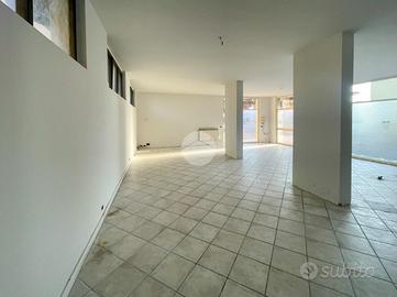 La soluzione si sviluppa su una superficie interna di 80 mq e presenta numerose vetrine che illuminano e garantiscono luminosità naturale al locale.