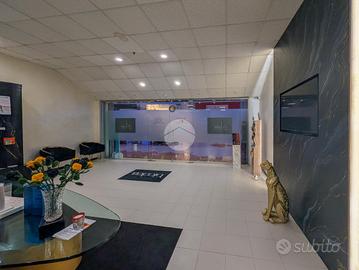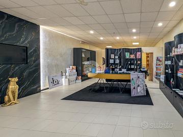La soluzione si sviluppa su una superficie di circa 175 mq ed è dotata di ampie vetrine ideali per garantire luminosità naturale e visibilità.