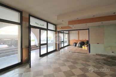 L'ambiente è molto luminoso grazie alla presenza di tre ampie vetrine poste sulla facciata dell'immobile al di sotto del portico.