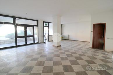 Gli ambienti sono molto luminosi grazie alla presenza di nove ampie vetrine poste sulla facciata dell'immobile al di sotto del portico.