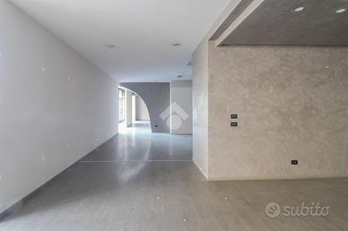 La soluzione proposta in vendita ha una superficie che misura nella sua totalità 470 metri quadrati. Internamente l'immobile è caratterizzato da due ampi ambienti, resi molto luminosi grazie alla presenza di quattro vetrine con affaccio su strada. Il negozio è dotato degli impianti elettrico, di illuminazione, di allarme, di riscaldamento e di condizionamento. A completare la soluzione è la presenza di due servizi igienici privati e di circa 190 metri quadrati di magazzino, posto al piano interrato e accessibile tramite scale.