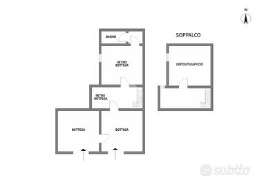 La bottega, con categoria catastale C/1, si presta a diverse tipologie di attività. Ben disimpegnata, ha una metratura interna di 83 mq con due ampie sale vendita con ingresso da strada, un retro bottega ampio con bagno ed un comodo soppalco utilizzabile come deposito/archivio.