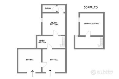 La bottega, con categoria catastale C/1, si presta a diverse tipologie di attività. Ben disimpegnata, ha una metratura interna di 83 mq con due ampie sale vendita con ingresso da strada, un retro bottega ampio con bagno ed un comodo soppalco utilizzabile come deposito/archivio.