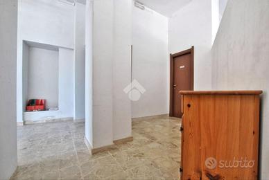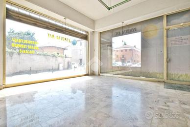 In zona di forte transito pedonale e veicolare, proponiamo in locazione un locale commerciale di circa 120 metri quadrati, situato al piano terra di uno stabile con ottima visibilità. Le cinque vetrine angolari, dotate di serrande manuali e affacciate sulla strada provinciale, sono perfette per attività che necessitano di una forte presenza su strada, irradiando luce naturale negli ambienti interni durante le ore mattutine. L'immobile è costituito da un ampio spazio, pavimentato in ceramica, suddiviso da strutture in cartongesso che definiscono due ambienti principali e che, all'occorrenza, possono essere rimosse per ottenere un pratico open space. Due ingressi, uno frontale sulla piazzola e uno sulla strada provinciale, garantiscono un'ottima accessibilità per la clientela. A supporto dell'area espositiva, sullo stesso piano, sono presenti un vano sul retro, un ripostiglio e i servizi igienici con antibagno.
