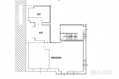 Il negozio si estende su una superficie di circa 50 metri quadrati e si compone di due ambienti. L'area dedicata all'accoglienza clienti, servita da un unico ingresso, è attualmente organizzata in due sezioni mediante una parete in cartongesso, facilmente rimovibile, che suddivide lo spazio in due ambienti di circa 30 e 15 metri quadrati. La luminosità e la visibilità sono garantite da tre ampie vetrine angolari, tutte dotate di serrande, due delle quali motorizzate. Sul retro, un ripostiglio precede l'accesso ai servizi igienici, dotati di ventola per il ricircolo dell'aria, e completi di antibagno.