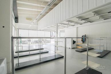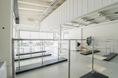 lo spazio interno del negozio si sviluppa in un ampio openspace illuminato dalla presenza di due vetrine, con affaccio su strada, che donano visibilità dall'esterno.