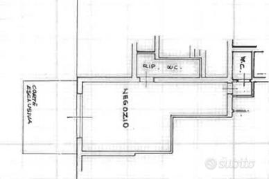 Ambiente principale ad uso commerciale, ripostiglio/ bagno, e ulteriore bagno e corte esclusiva.