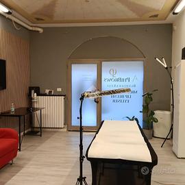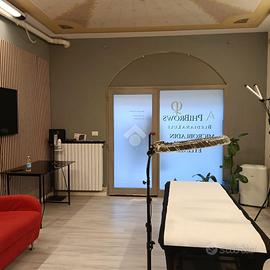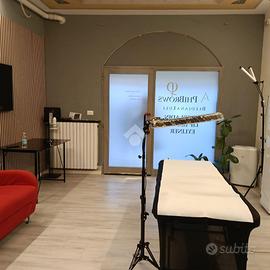 Il negozio e' su pianta rettangolare , con presenza di bagno ed antibagno , recentemente ristrutturato e messo a norma per attivita' di estetista.