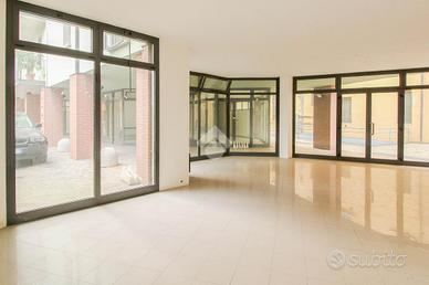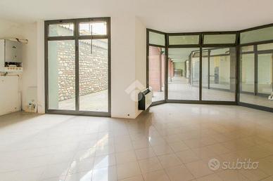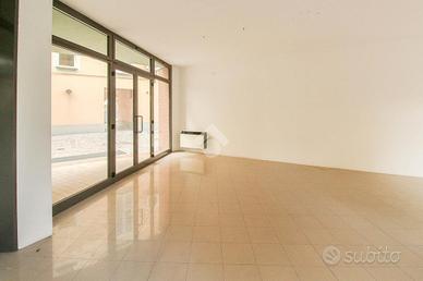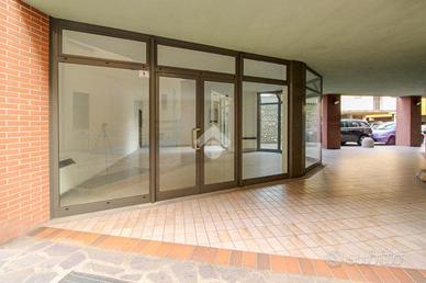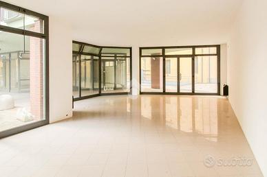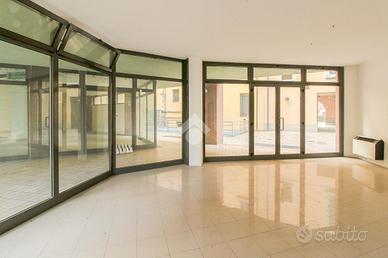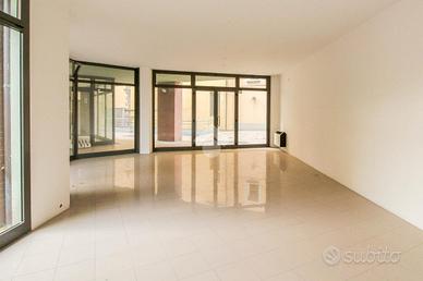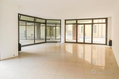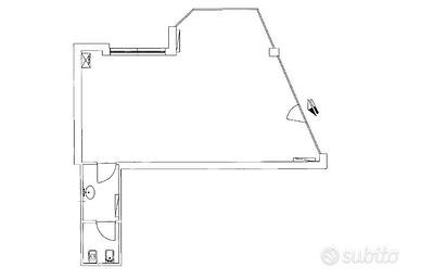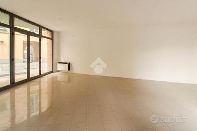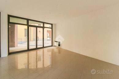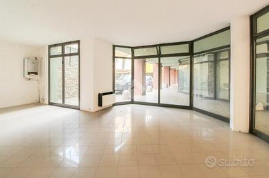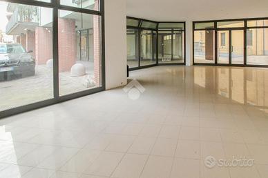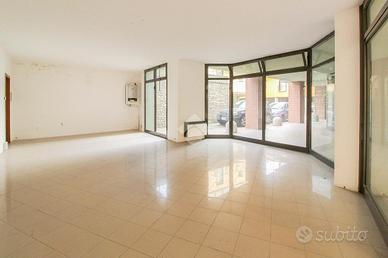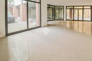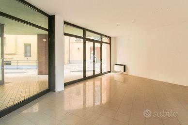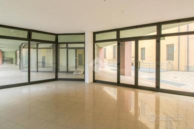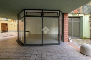 Il locale è posto in posizione angolare con vetrate che occupano due lati del perimetro. Internamente la pianta si svolge con forma irregolare. L'ambiente interno è totalmente openspace. La soluzione dispone di impianto elettrico, di illuminazione e di riscaldamento. Sono presenti inoltre i servizi igienici.