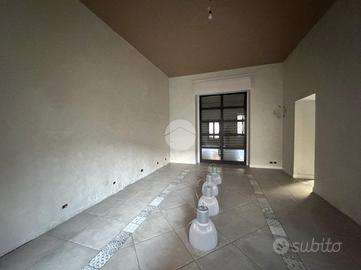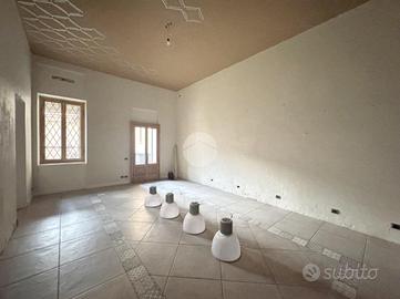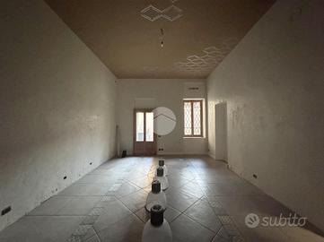 A completare la proprietà vi è una cantina di circa 30 mq al piano interrato, accessibile esclusivamente tramite scala interna, oltre a un ampio cortile di circa 80 mq sul retro del negozio, per metà coperto da tettoia.