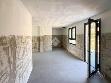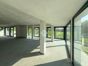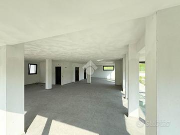 La soluzione misura circa 410 metri quadrati, si suddivide in cinque locali e possiede due servizi igienici a norma disabili. La struttura ha un'altezza di circa 3,00 metri, è caratterizzata da una pavimentazione con piastrelle e risulta molto luminosa grazie alla presenza di sette ampie vetrine. L'immobile presenta la canna fumaria e la predisposizione all'impianto di riscaldamento, condizionamento, elettrico e di illuminazione.