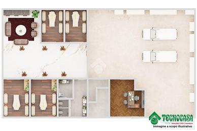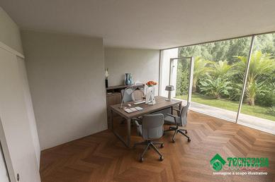 Alla soluzione vi si può accedere da ingresso pedonale tramite una delle quattro ampie vetrine fronte strada oppure da accesso carraio posto sul lato est, adatto a mezzi medio-grandi.