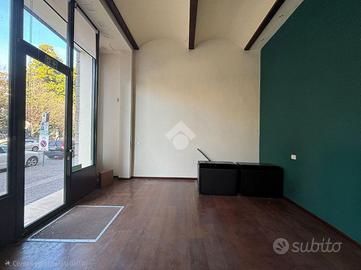 Soluzione ideale per chi cerca una posizione centrale con forte impatto visivo e spazi accessori funzionali all'attività.