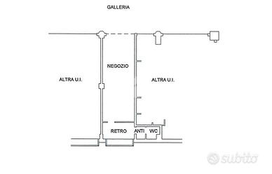 L'immobile è situato al piano terra, all'interno della galleria del centro commerciale, in un contesto condominiale in ottimo stato, sede di altre attività commerciali e di servizi. Internamento composto da un vano unico con servizio interno, dotato di impianto di riscaldamento e condizionamento centralizzato. Grazie alla prospicienza al supermercato coop gode di un ampio passaggio pedonale e ampia disponibilità di parcheggio.