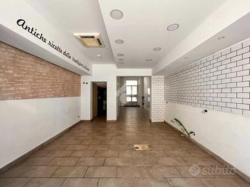 Il locale è posto al piano terra di un complesso a tre piani e si estende su una superficie open space di circa 60 mq con annesso uno spazio adibito a deposito/magazzino sito al piano interrato della struttura di circa 80 mq. Le attività commerciali adiacenti e il mercato settimanale che si tiene in vicinanza del locale portano un flusso costante di clientela.