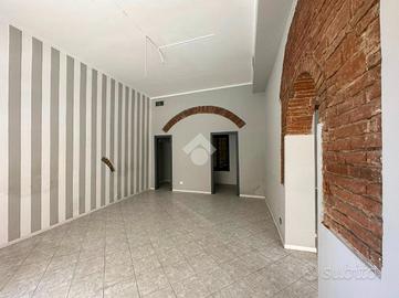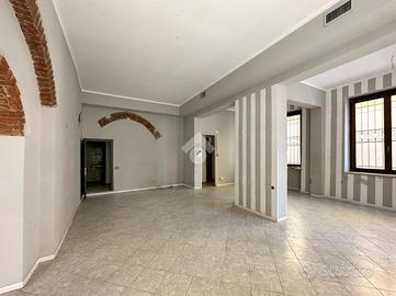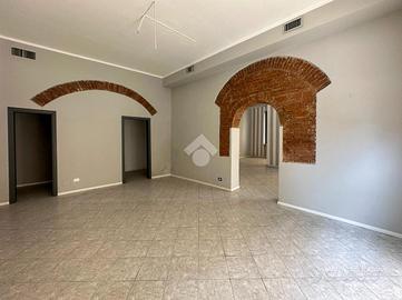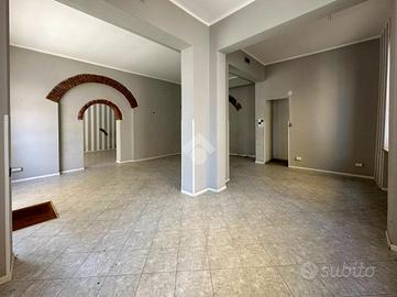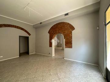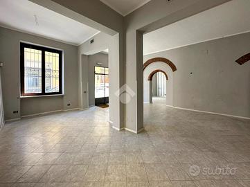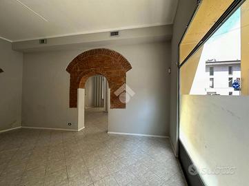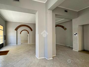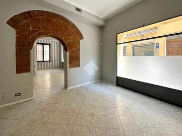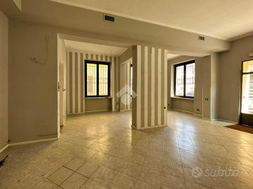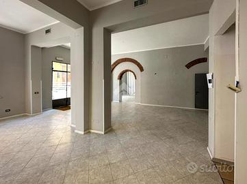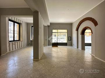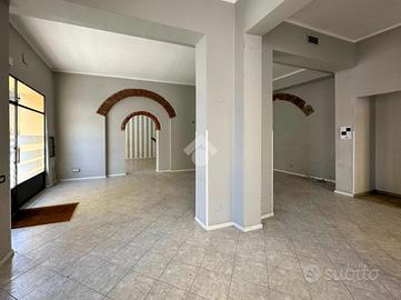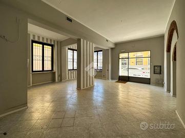 Il locale è ubicato al piano terra di un edificio di tre piani e si estende su una superficie, divisa da pareti, di circa 140 mq. La soluzione proposta vanta di due vetrine fronte strada.