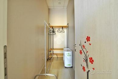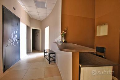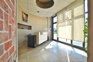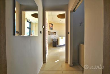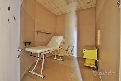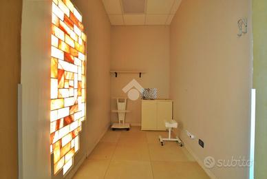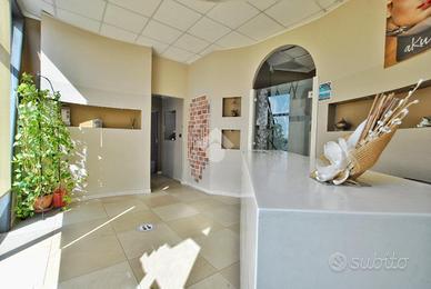 L'unità si sviluppa su una superficie complessiva di circa 160 metri quadrati. Un accogliente e luminoso ingresso, irradiato dalla luce naturale sin dalle prime ore del mattino, introduce agli spazi interni, distribuiti in ambienti pratici, funzionali e ben organizzati. Gli spazi comprendono quattro sale massaggio, una sala d'attesa, due cabine armadio, un'ampia 'sala acqua' di oltre 50 metri quadrati, dotata di sauna, sauna a vapore e vasca idromassaggio, due spogliatoi e doppi servizi igienici, separati per uomo e donna, entrambi con antibagno e doccia.