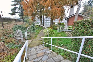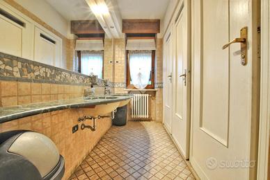 - appartamento: al primo piano si sviluppa un alloggio di circa 140 metri quadrati. La zona abitativa comprende un alloggio di cinque locali: tre camere da letto formano la zona notte, mentre il bagno è dotato di doccia e allacci per la lavatrice. È inoltre presente un locale adibito a lavanderia. La veranda offre una splendida vista sul parco della proprietà e sul suggestivo laghetto.