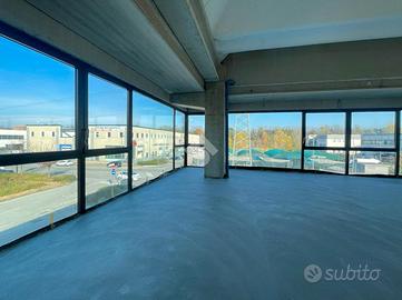 L'immobile è posto al primo piano di un recente edificio a destinazione commerciale ed artigianale, è raggiungibile tramite un comodo ascensore condominiale e dispone di ampie vetrate, che rendono molto luminosi tutti gli ambienti.