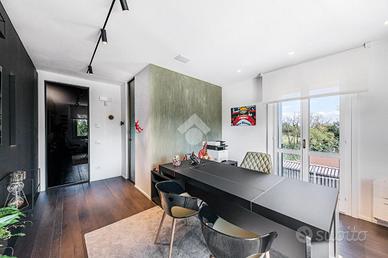 Area esterna: Area esterna pavimentata con accesso indipendente con sbarra elettrica. Parcheggio sul retro dell'immobile. Ulteriore capacità edificatoria di circa 120 mq