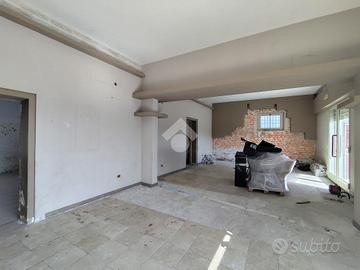 E composto da un' ampio locale con bagno, cucina, ripostiglio e veranda, ma il vero punto di forza è costituito dall' ampio spazio esterno pertinenziale che può essere utilizzato per esposizioni all'aperto, come parcheggio per la clientela, oppure come giardino estivo per un' attività di ristorazione o di somministrazione.