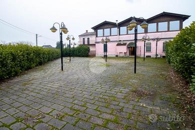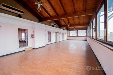 La soluzione proposta in vendita possiede una metratura totale di circa 595 metri quadrati interni, distribuiti su più livelli di un edificio di tre piani, con annessa vasta area esterna privata di circa 2.000 metri quadrati.