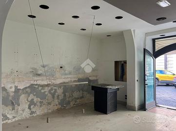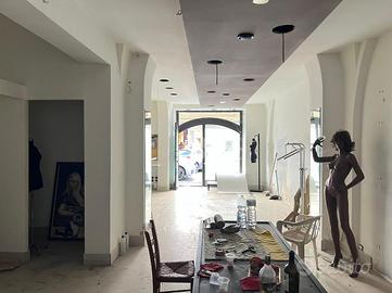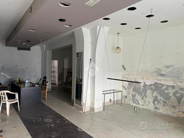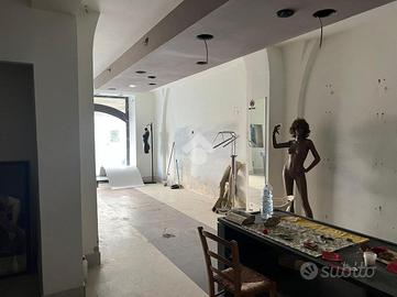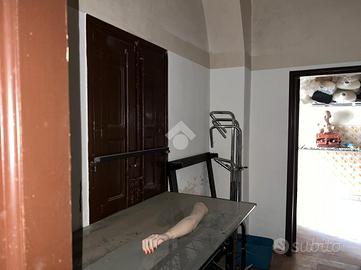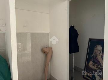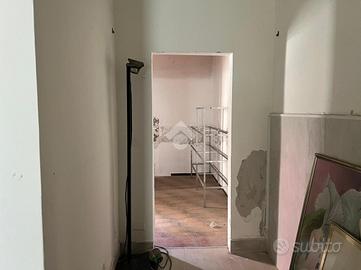 La bottega: al piano terra da 97 mq calpestabili unica luce, l'ingresso è su un ambiente di 60 mq, in sequenza altri tre ambienti, antibagno e bagno. Dagli ambienti è accessibile un cortile interno di circa ventidue metri quadri. Le condizioni della bottega sono da ristrutturare, da rifare l'impianto idrico, da rivedere l'impianto elettrico che nel tempo è stato rifatto ma oggi da revisionare. Gli infissi sono in legno monovetro.