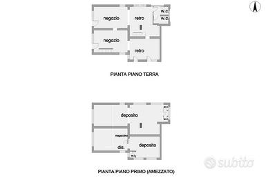 - Piano terra: ampia area commerciale con soffitti di notevole altezza, ideale per area vendita, esposizione o accoglienza clienti. Gli spazi sono completati da locali retrostanti ad uso operativo e di servizio, oltre a servizi igienici, garantendo praticità e comfort per personale e clientela.