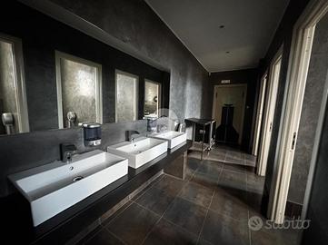 La presenza di tre bagni garantisce funzionalità e comodità per la clientela, mentre i servizi igienici e gli spogliatoi sul retro danno ampio confort al personale.