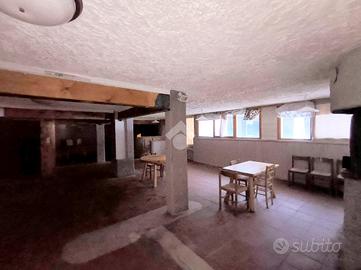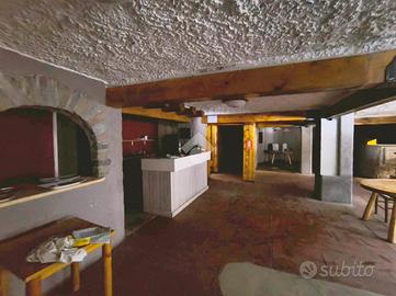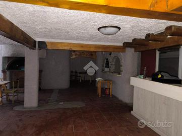 La metratura è di circa 187,00 mq con un ingresso su un' ampia sala con vista bancone e forno a legna, un locale adibito a cucina con canna fumaria e doppio servizio igienico.
