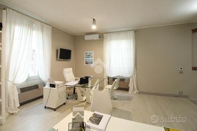 Proponiamo in locazione un negozio che dispone di una superficie utile di circa 70 metri quadrati, posto al piano terra e al primo piano di un edificio strutturato su due piani.