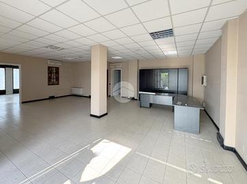 A Gussago, su strada ad alto scorrimento automobilistico, proponiamo in affitto negozio/ufficio di circa 130 mq, posto al piano terra, suddiviso in 3 locali con doppio sevizio igienico.