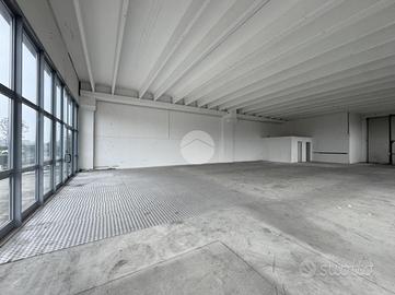 Al capannone si accede tramite un ingresso pedonale posto sul fronte ove ci sono le vetrine ed un piccolo piazzale cintato di proprietà, mentre sul retro della singola campata open space è presente un portone carraio di accesso per mezzi di medie dimensioni, con altezza di 4,5m e larghezza 4,5m.
