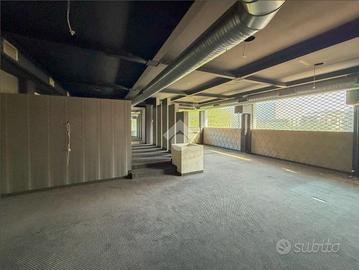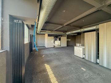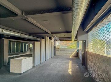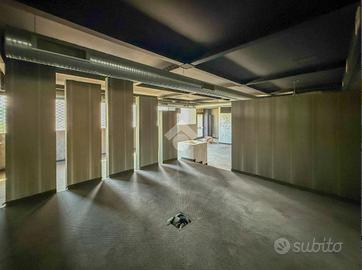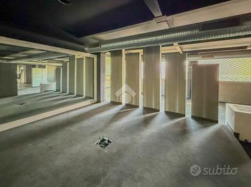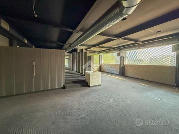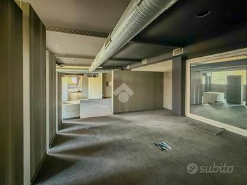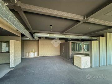Il negozio misura circa 150 metri quadrati disposti al piano terra di un edificio di due livelli, si suddivide in un unico locale e non possiede servizi igienici. La struttura è controsoffittata e ha un'altezza di circa 3,50, è caratterizzata da una pavimentazione in moquette e risulta molto luminosa grazie alla presenza di quattro ampie vetrine. L'immobile è cablato, presenta l'impianto di riscaldamento, di condizionamento e d'illuminazione. Gli impianti elettrici e d'allarme sono da ripristinare. L'ufficio è dotato di saracinesche automatiche, antincendio a pioggia e a idranti con rilevatori, uscite e luci di emergenza con porta tagliafuoco. Nell'immobile è presente la canna fumaria e la ventilazione meccanica.
