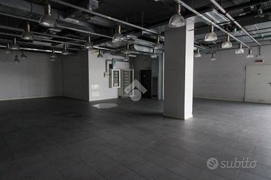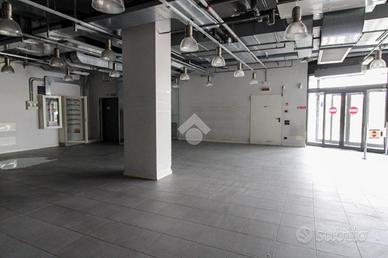 Il negozio misura circa 420 metri quadrati ed è situato al piano terra di una costruzione che si sviluppa su tre livelli. La soluzione presenta un ampio open space ed è inoltre dotata di due servizi igienici privati di cui uno a norma disabili. L'ambiente risulta particolarmente luminoso grazie alla presenza di quattro grandi vetrine. Possiede l'impianto di riscaldamento, di condizionamento quello elettrico e quello di illuminazione. L'immobile dispone di due saracinesche automatiche e un doppio ingresso. L'unità vanta della presenza di un montacarichi che porta al piano seminterrato in cui sono presenti spogliatoi per uomini e donne con annessi servizi igienici e un magazzino di circa 550 metri quadrati.
