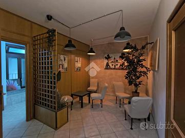 La soluzione si sviluppa al piano terra ed è accessibile dalla strada. Si compone di un locale per l'accoglienza dei clienti e del retro. A completare la proposta un bagno a norma per i disabili. Il locale è stato recentemente ristrutturato ed è completo di tutta l'impiantistica. La posizione centrale rende lo spazio versatile sia per un locale commerciale che per un ufficio.